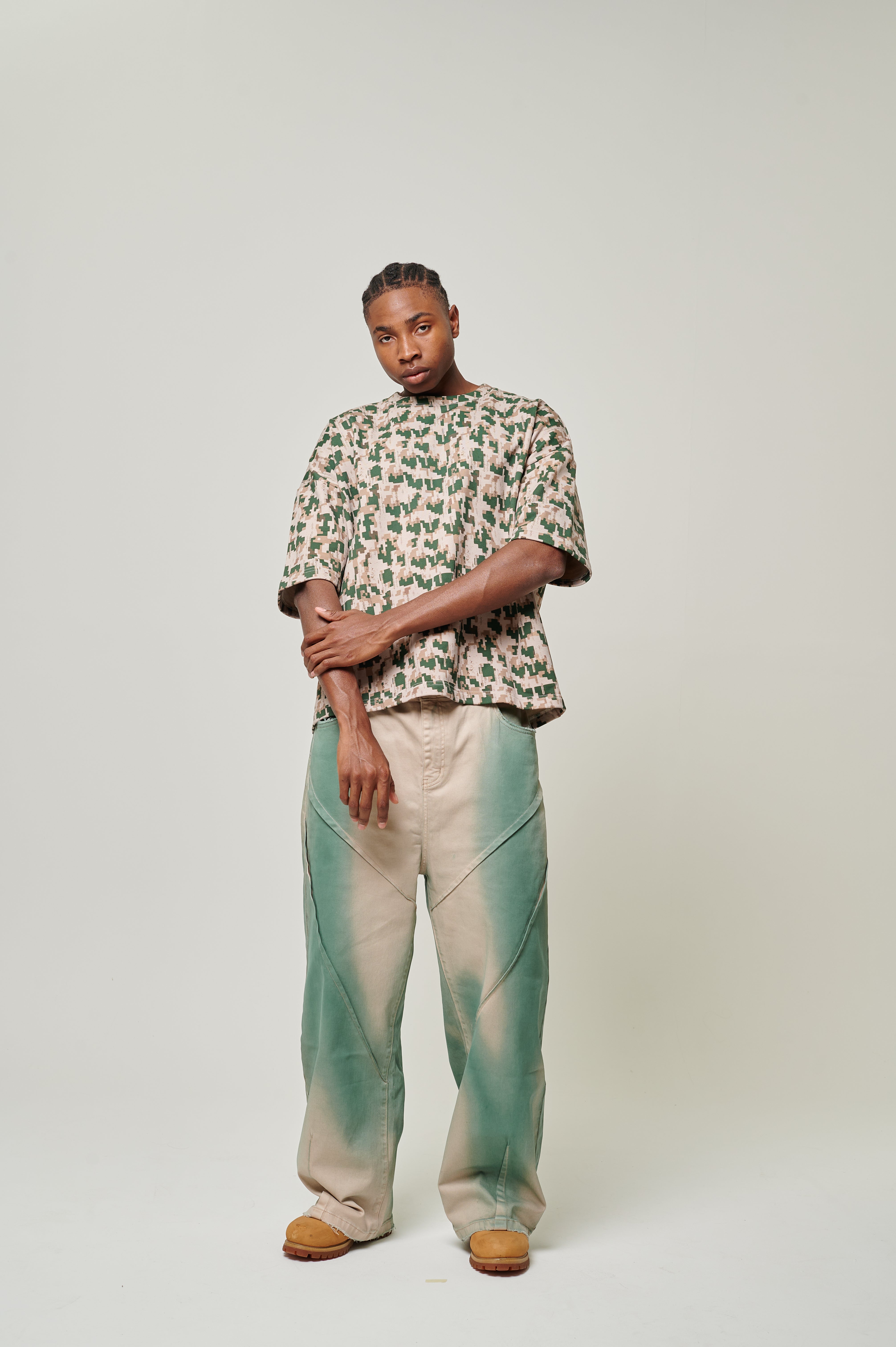 SPRAY WASHED DENIM ( CAMO GREEN)