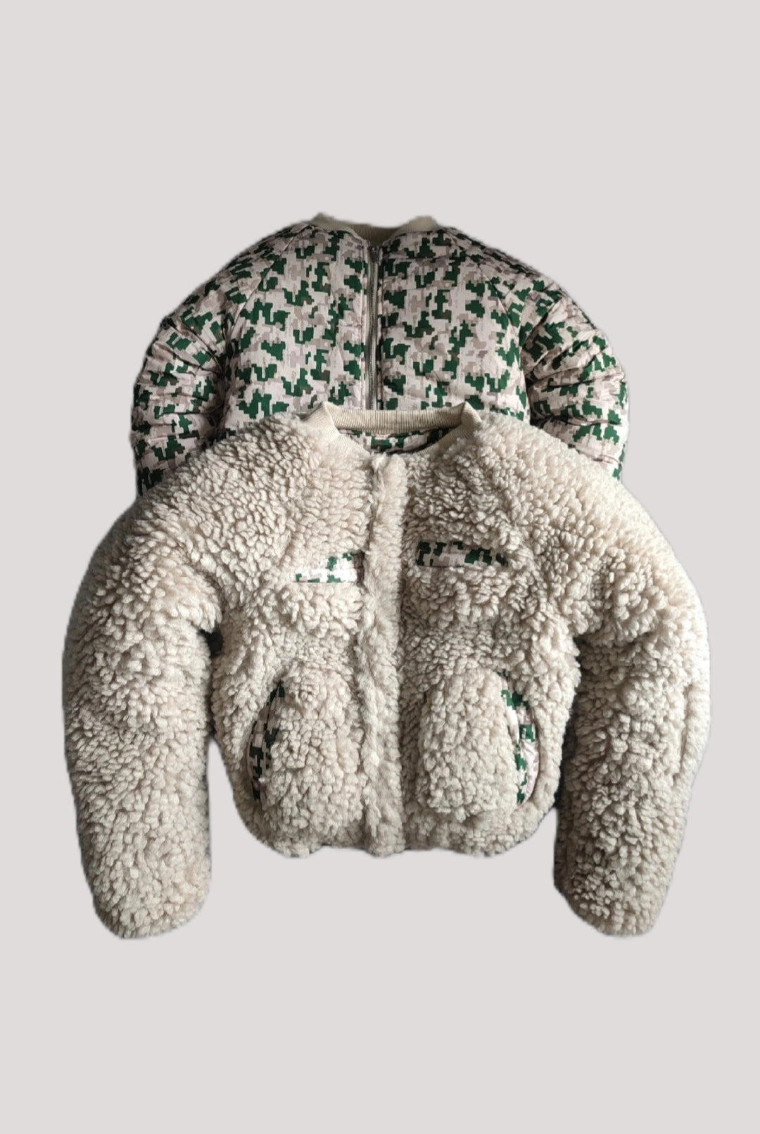 Relaxed / Boxy Fit Unisex Reversible Bomber jacket. Camo Pattern Abstract Unique Design.